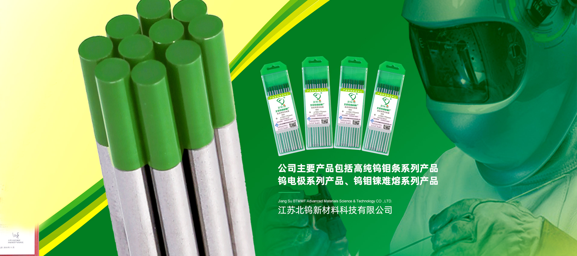 江蘇北鎢新材料科技有限公司(以下簡稱“公司”)是央企礦冶科技集團有限公司控股的三級企業,于2015年9月成立,注冊資本2000萬元,資產超億元。公司其前身是源于1964年的北京鎢鉬材料廠,2015年北礦新材科技有限公司鎢鉬產業整體轉移至江蘇省泰州市,成立控股子公司江蘇北鎢新材料科技有限公司。公司是國家高新技術企業,鎢電極國家標準第一起草單位。目前公司已通過ISO9001/ISO14001/ISO45001等體系認證。公司主要產品包括高純鎢鉬條系列產品、鎢電極系列產品、鎢鉬錸難熔系列產品。產品廣泛應用于航空航天、核能、電力等行業,并出口至歐美、俄羅斯、日本、東南亞等國家和地區,深受廣大客戶青睞。歡迎來電來函垂詢!